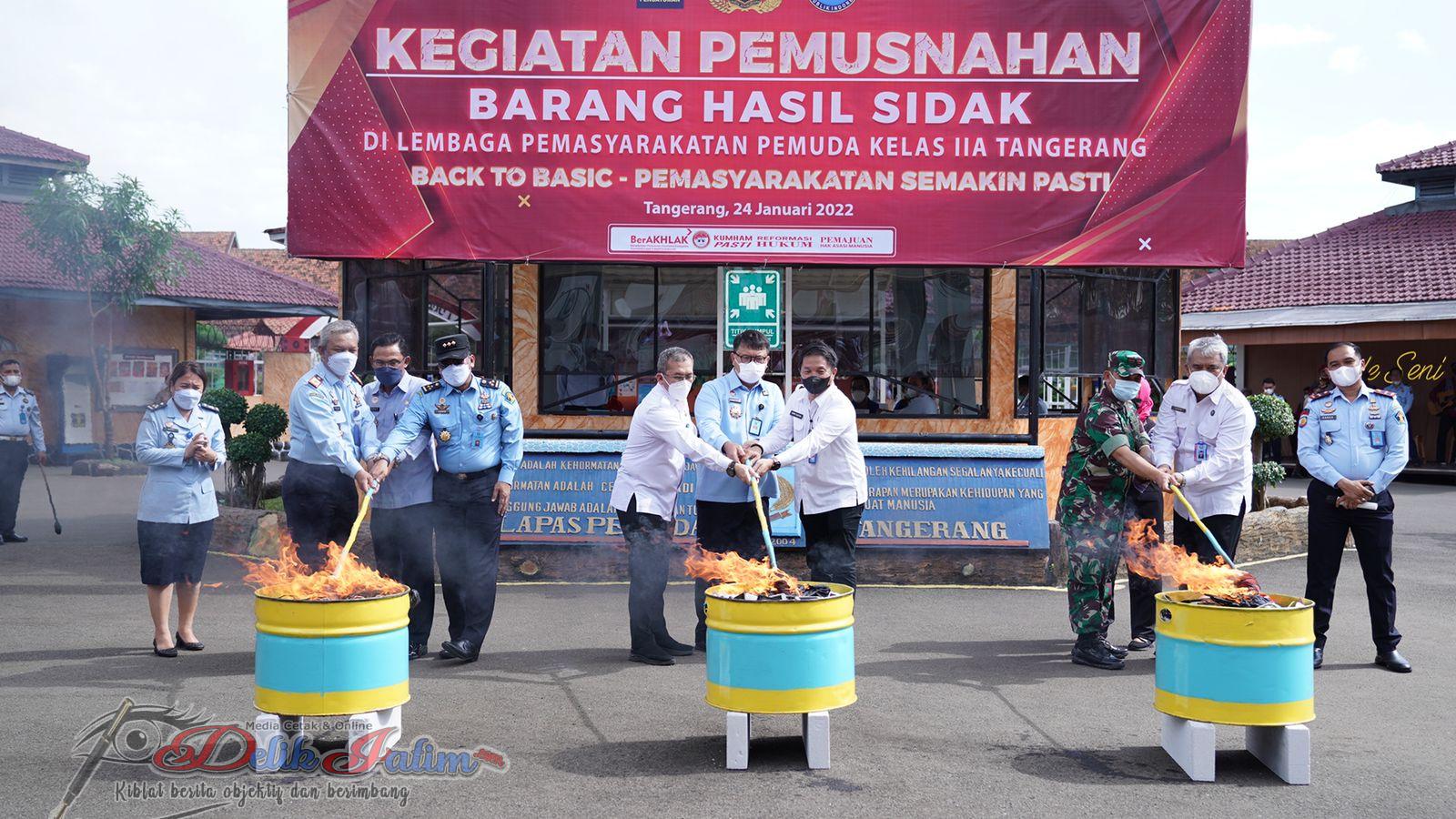 Kegiatan diakhiri dengan pemusnahan barang bukti hasil penggeledahan dan razia di Lapas Pemuda Tangerang yang dilakukan sejak bulan April 2021. Pemusnahan dilakukan dengan cara dibakar dan dilaksanakan secara simbolis oleh DirjenPAS, Kepala Kantor Wilayah KemenkumHAM Banten dan Kepala BNN Propinsi Banten. (Diyon).