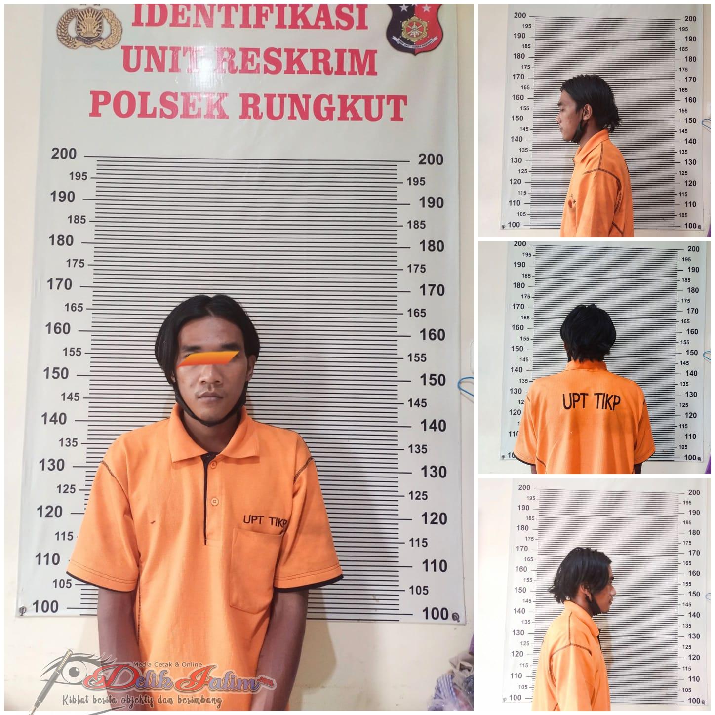 Kapolsek Rungkut Kompol Bambang Prakoso SH.,SIK., yang didampingi Kanit Resrkirm Iptu Djoko Soesanto menerangkan, Pada hari Kamis tanggal 27 Januari 2022 sekitar jam 18.00 WIB pelaku di tangkap oleh Opsnal Polsek Rungkut yg sudah menyanggong secara intens selama 3 hari di tempat persembunyiannya di tempat kos mantan istrinya di jl Barong Kec Siman Kab Ponorogo.