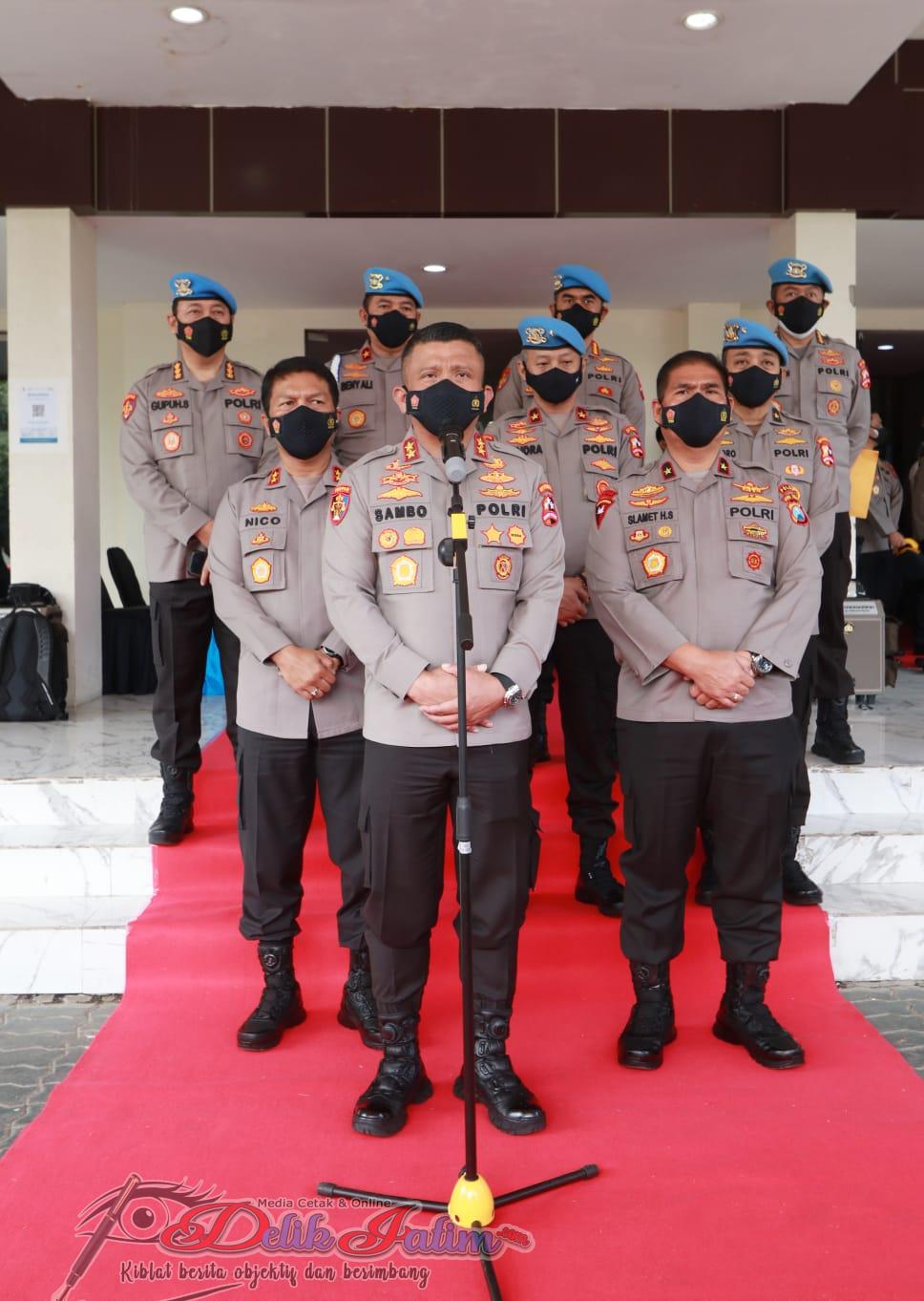 Surabaya, Delikjatim.com – Kepala Divisi Profesi dan Pengamanan (Propam) Polri, Irjen Pol Ferdy Sambo dengan didampingi Karopaminal Brigjen Pol Hendra Kurniawan, Karoprovos Brigjen Pol Benny Ali serta Karowabprof Brigjen Pol Anggoro Sukartono lakukan kunjungan kerja di Polda Jawa Timur, Jumat (21/1/2022) dan disambut hangat oleh Kapolda Jatim Irjen Pol Nico Afinta, Wakapolda Jatim Brigjen Pol Slamet Hadi Supraptoyo beserta seluruh Pejabat utama polda jatim dan para Kapolres jajaran Polda Jawa Timur.