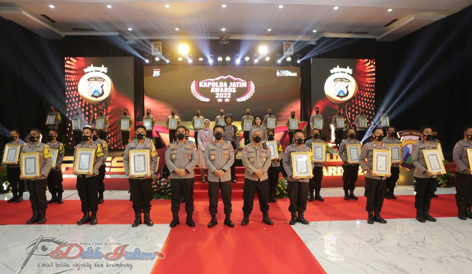 Surabaya, Delikjatim.com – Kapolda Jawa Timur Irjen Pol Nico Afinta memberikan sejumlah penghargaan dalam acara Kapolda Jatim Award 2022, Jumat (7/1/2022).