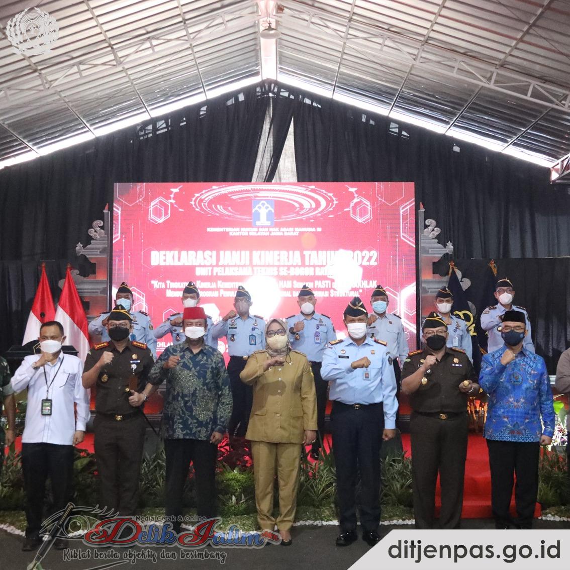 Cibinong, Delikjatim.com – Seorang Dalam rangka meningkatkan pelaksanaan kinerja yang semakin Profesional, Akuntabel, Sinergi, Transparan & inovatif (PASTI) dan berorientasi pelayanan akuntabel kompeten, harmoni, loyal, adaptif, kolaboratif (BerAKHLAK), UPT (Unit Pelaksana Teknis) Kementerian Hukum dan Hak Asasi Manusia (Kumham) Se-Bogor Raya melaksanakan pendatanganan komiten bersama Deklarasi Kinerja Tahun 2022 dan Pembangunan Zona Integritas (ZI) menuju Wilayah Bebas dari Korupsi dan Wilayah Birokrasi Bersih dan Melayani (WBK/WBBM) yang diselengggarakan di Lembaga Pemasyarakatan Kelas IIA Cibinong pada Senin, (17/01/22).