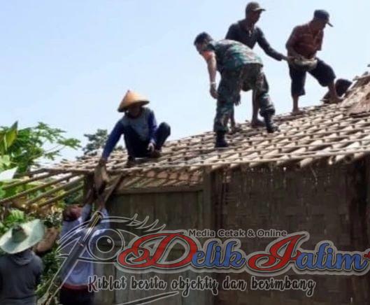 Boyolali, Delikjatim.com – Babinsa Babadan Koramil 10/Sambi Kodim 0724/Boyolali Koptu Fathur melaksanakan karya bhakti membantu warga memperbaiki rumah tinggal atau atap yang rusak Dukuh Jambon RT 18 Rw 02 Desa Babadan Kecamatan Sambi Kabupaten Boyolali, Senin (14/02/2022).