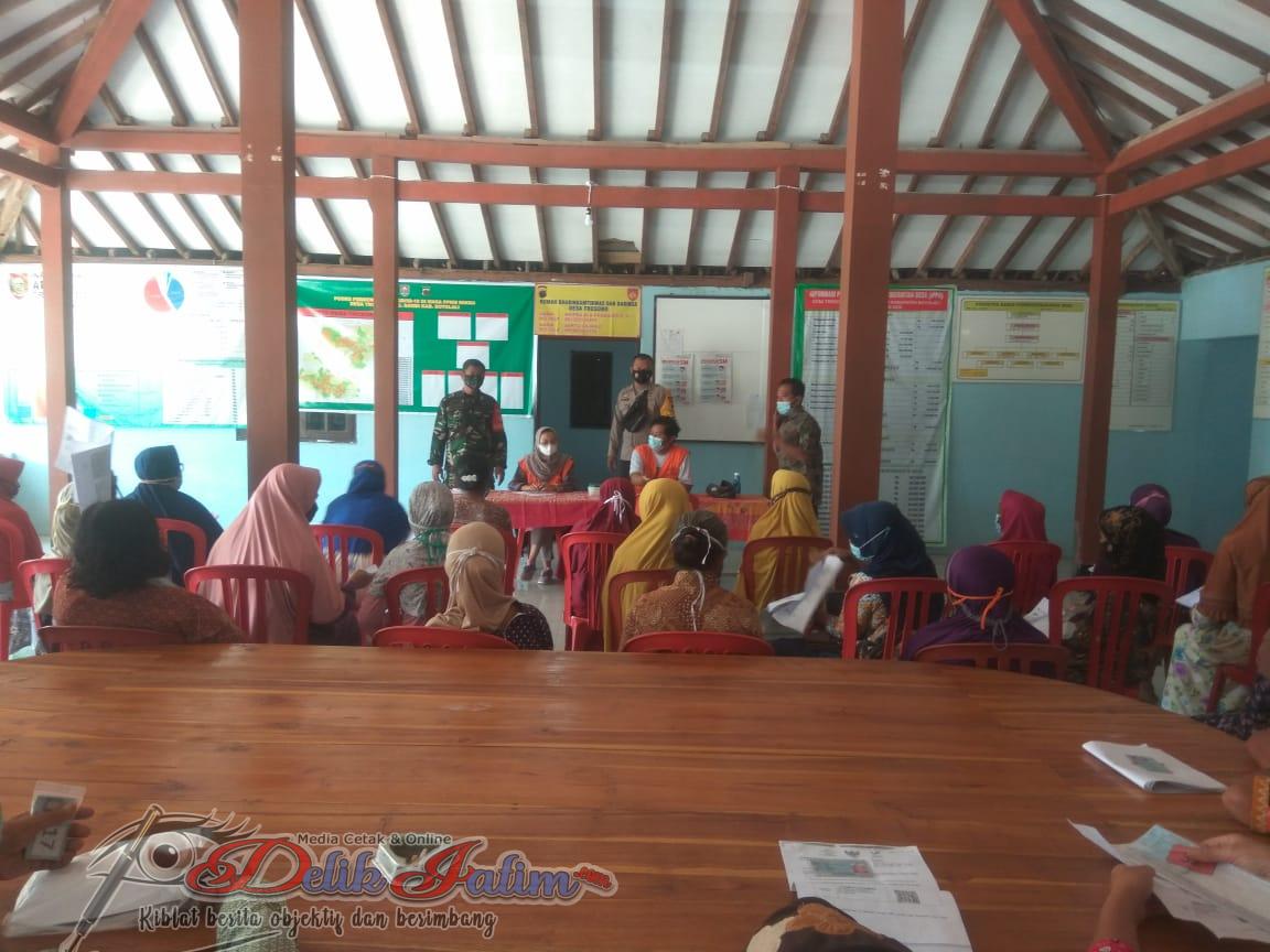 Boyolali, Delikjatim.com – Babinsa Trosobo Koramil 10/ Sambi Kodim 0724/Boyolali Sertu Sajanji bersama Babinkamtibmas Bripka WA Prabowo melaksanakan kegiatan pendampingan penyaluran bantuan sosial (bansos) atau Kartu Sembako berupa uang Rp.600.000 yang bertempat di Balai Desa Trosobo, Desa Trosobo Kecamatan Sambi Kabupaten Boyolali, Sabtu (26/02/2022).