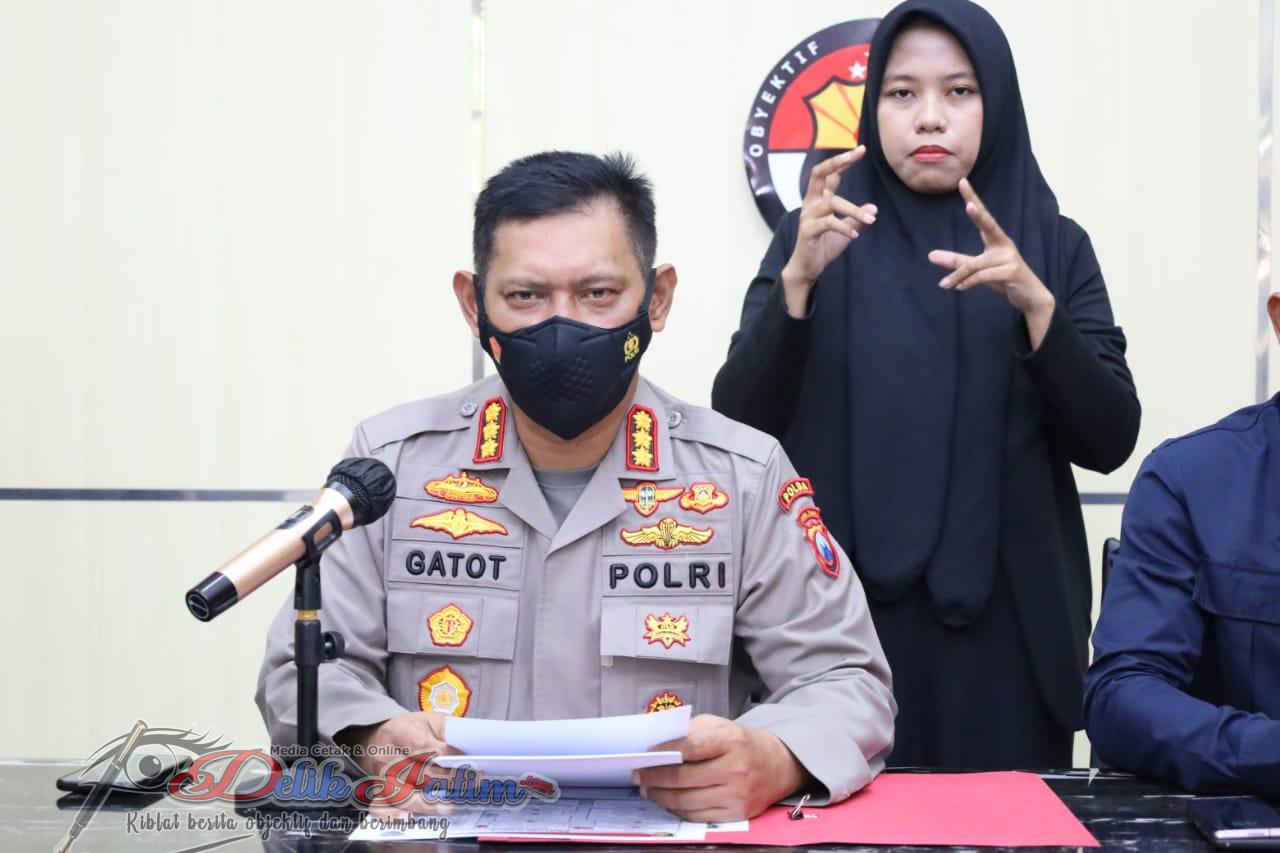 Kabid Humas Polda Jatim Kombes Pol Gatot Repli Handoko, menyampaikan perkembangan dari hasil penyelidikan dugaan adanya tindak pidana ITE yang terjadi di Bojonegoro.