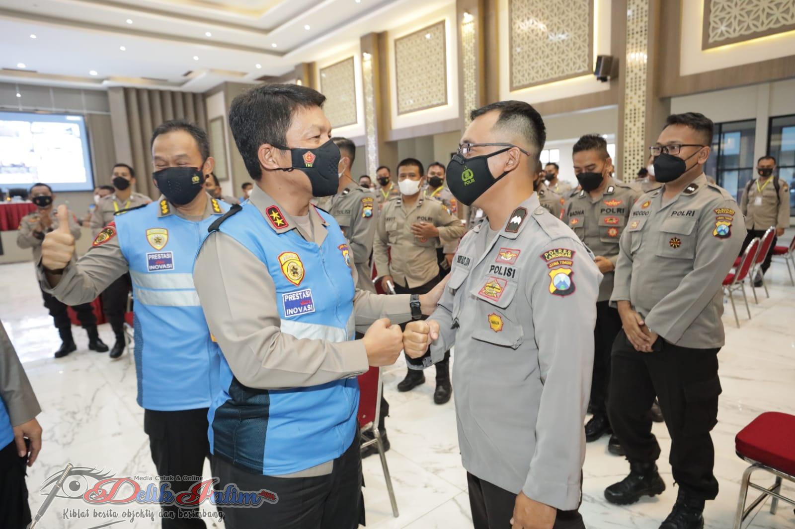 “Kami menyampaikan perhatian dan penghargaan dari bapak Kapolri kepada anggota yang berprestasi dan anggota yang melaksanakan tugas wewenang dan tanggung jawab dengan sangat baik dan anggota yang mendapat penghargaan khusus dari bapak Kapolri salah satunya Andreas anggota Polres Lamongan yang mengalami luka di matanya saat melaksanakan penegakan hukum terhadap teroris, merupakan kebanggan bagi kami jajaran polda jatim atas perhatian dan penghargaan dari bapak kapolri tersebut,” tutup Irjen Nico. (Ibed).