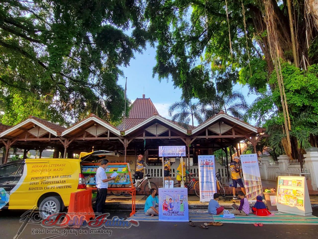 Hal ini pun disampaikan Dra Ninik Asrukin Kepala Dinas Perpustakaan dan Kearsipan Kabupaten Gresik didampingi Inuk Rachmawati kasi layanan dan peningkatan minat baca atau fungsional pustakawan ahli muda mengatakan ” kami menggelar perpustakaan berjalan di alun-alun kabupaten gresik bertujuan menambah ilmu generasi muda agar lebih banyak menggali ilmu melalui membaca buku-buku. ujarnya saat wawancara bersama awak media.