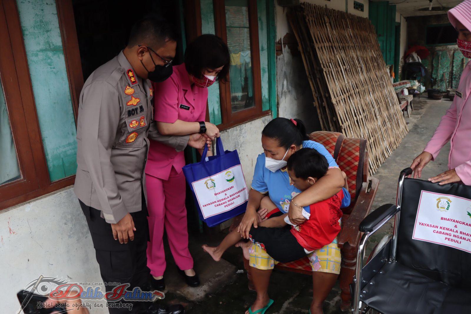 Hal tersebut seperti yang diungkapkan oleh Kapolres Nganjuk AKBP Boy Jeckson, S.H.,S.I.K.,M.H. bersama Ketua Bhayangkari Cabang Nganjuk Ny. Dina Boy saat menyerahkan bantuan kursi roda kepada 2 orang penyandang disabilitas di Desa Ngadiboyo, Rejoso, Senin (14/2/2022).