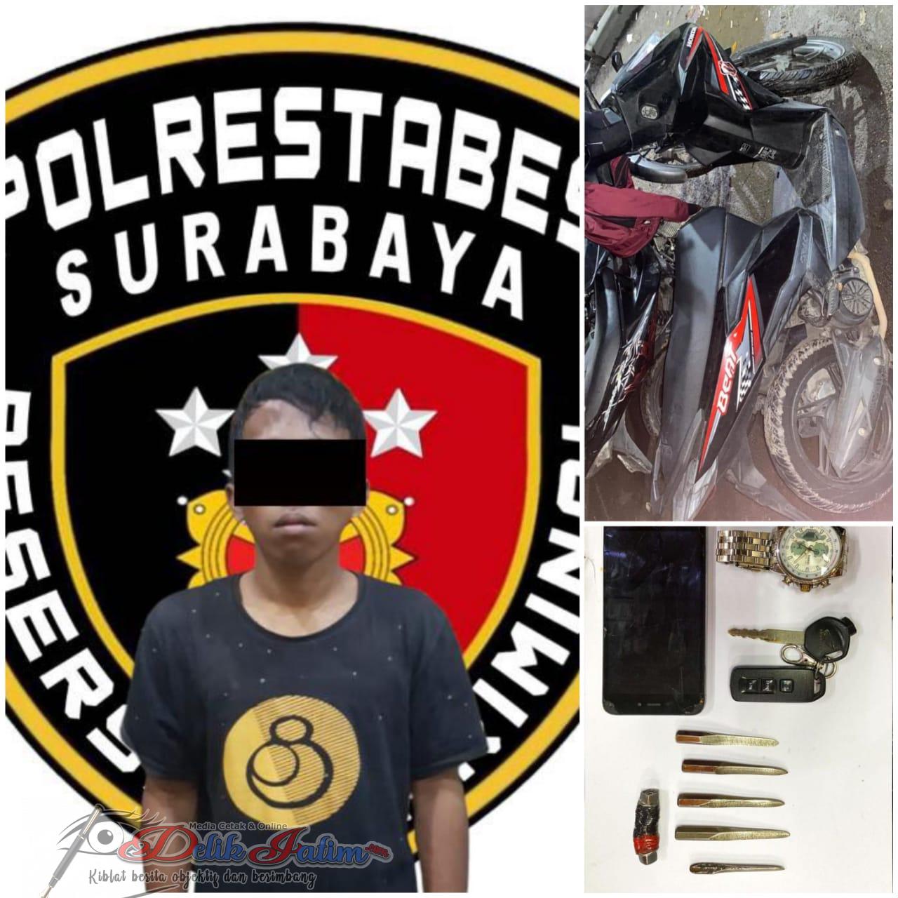 Surabaya, Delikjatim.com – Satreskrim Polrestabes Surabaya menangkap seorang pelaku pencuri dengan pemberatan yang telah beraksi di sejumlah lokasi. Aksi pelaku sempat terekam kamera pengawas atau CCTV saat mencuri sepeda motor.