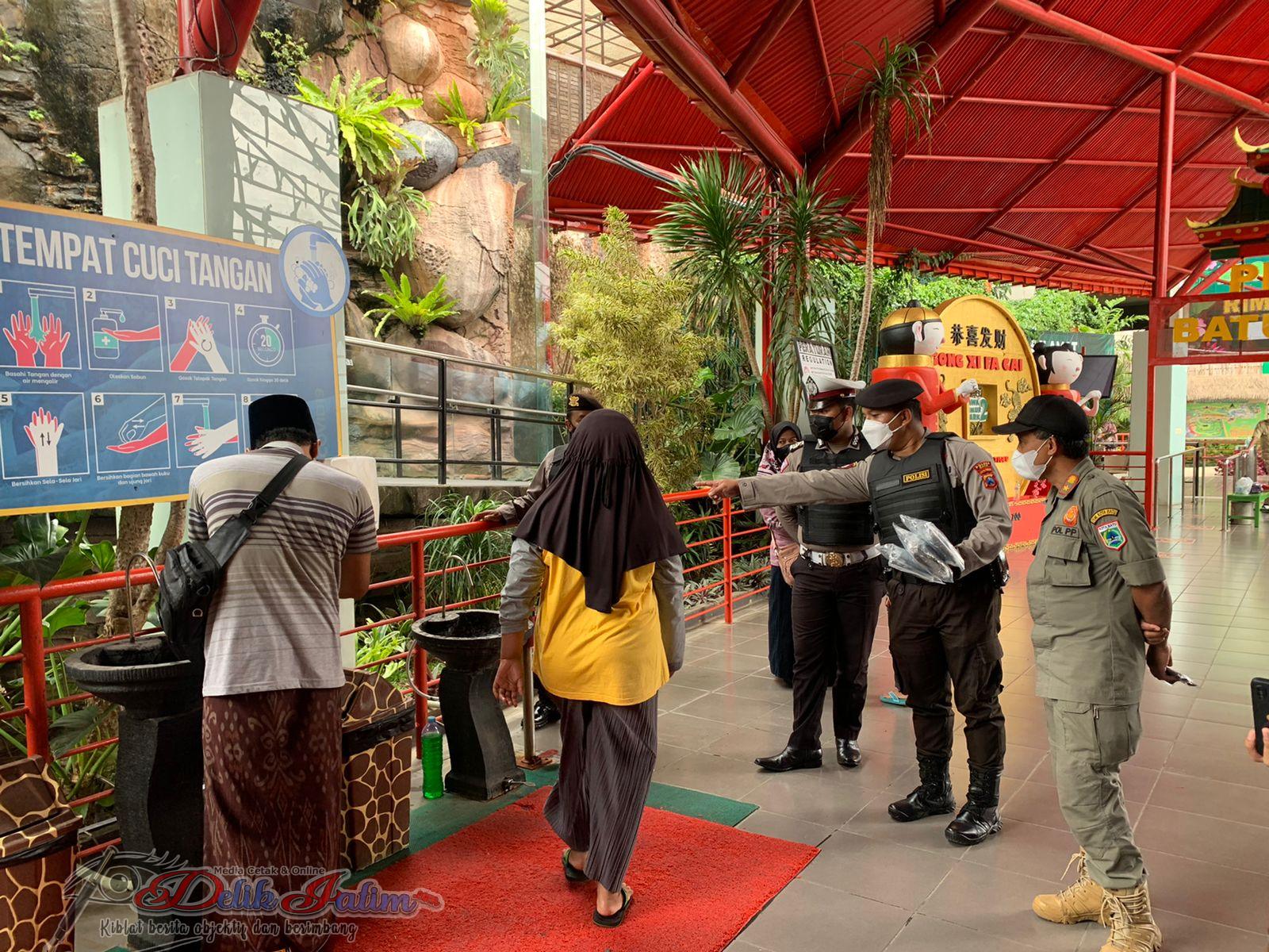Batu, Delikjatim.com – Covid-19 varian baru Omicron ada di depan mata, seiring menggeliatnya roda pariwisata di kota Batu, guna antisipasi penyebaran Covid-19 varian omicron tersebut, Tim ‘Pamor Keris’ (Patroli Motor Penegakan protokol kesehatan di Masyarakat) Polres Batu yang terdiri dari unsur TNI-Polri dan Satpol PP serta instansi terkait melaksanakan patroli dengan menyasar ke tempat-tempat wisata yang ada di Kota Batu, Kamis (10/2/2022).