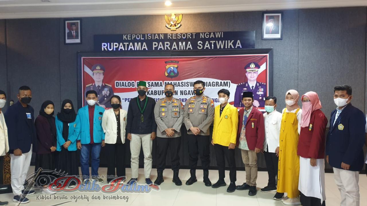 Ngawi, Delikjatim.com – Mengingat Organisasi Kemasyarakatan Pemuda (OKP) sebagai salah satu sumber daya yang dimiliki bangsa Indonesia pada umumnya maka Polres Ngawi menggelar Dialog Bersama Mahasiswa (DIAGRAM) Kabupaten Ngawi.