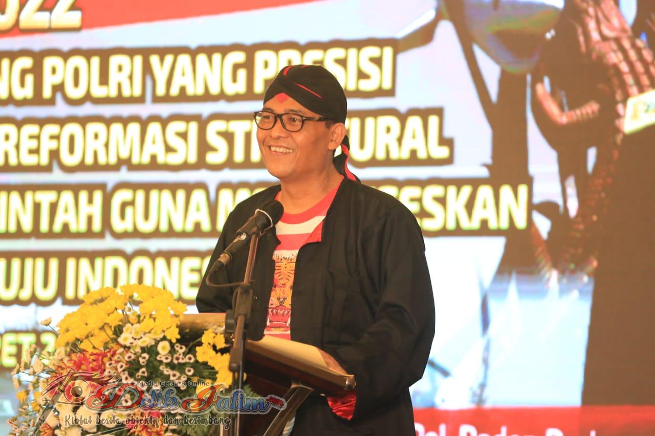 Menurut Argo, rakernis Logistik Polri berlangsung tanggal 24 hingga 26 Maret 2022. Suasana rakernis kata dia mengangkat kearifan budaya lokal Reog Ponorogo. “Ini mau sambutan gaya biasa atau gaya Warok,” ujar Argo berkelakar sambil tersenyum di sambut tawa para peserta.