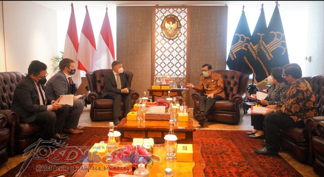 Jakarta, Delikjatim – Com Pemerintah saat ini sedang giat melakukan berbagai kebijakan memberikan kemudahan berusaha atau Ease of Doing Business (EoDB). Hal itu disampaikan Menteri Hukum dan HAM (Menkumham) Yasonna H. Laoly saat menerima kunjungan kehormatan Duta Besar (Dubes) Inggris, Owen Jenkins, di kantornya, Selasa ( 15/03/2022 ).