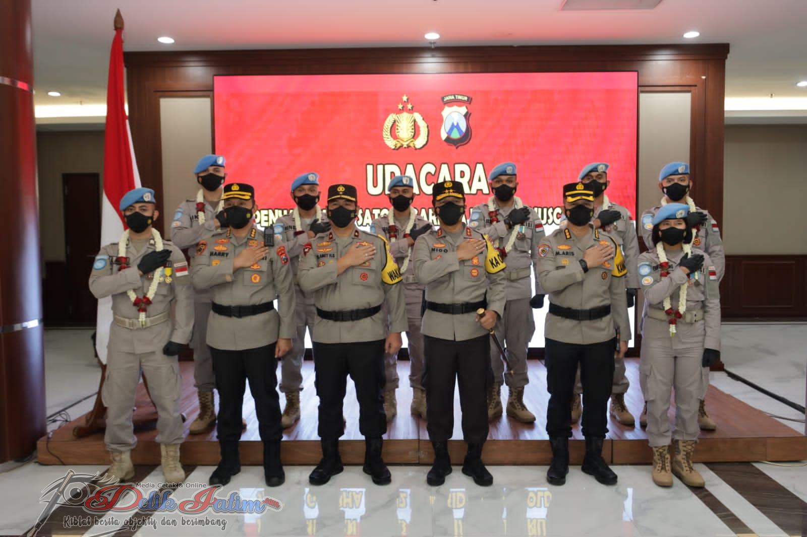 Kapolda Jatim Pimpin Upacara Penyambutan Personil Polda Jatim Satgas Garbha FPU 2 Minusca dan Satgas Garbha FPU 12 UNAMID/UN