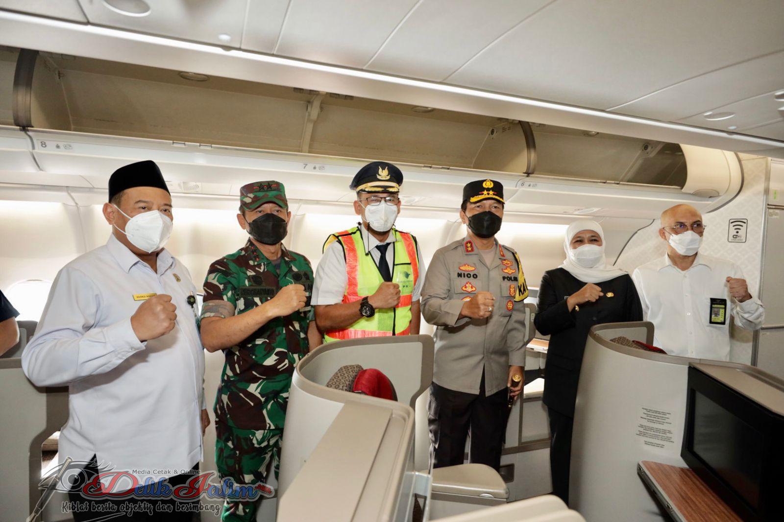 Gubernur Jawa Timur Khofifah Indar Parawansa, Pangdam V Brawijaya Mayjend TNI Nurchahyanto, Kapolda Jatim Irjen Pol Nico Afinta, Danlanudal Juanda, Kakanwil Kemenag Jatim, pejabat utama Kodam V Brawijaya, pejabat utama polda jatim, Kapolresta Sidoarjo, Direktur Teknik Garuda Indonesia serta Koordinator Himpunan Penyelenggara Umrah dan Haji Khusus (Himpuh) Jatim, Bali dan NTB secara resmi melepas jamaah umroh dan sekaligus membuka penerbangan jamaah umroh melalui Bandara Internasional Juanda.