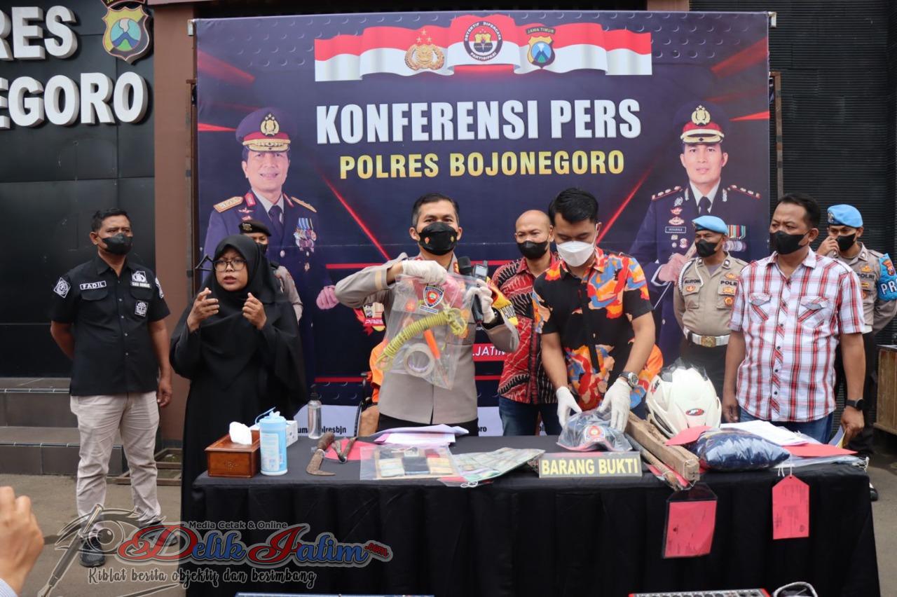 Hal ini disampaikan oleh Kapolres Bojonegoro, AKBP Muhammad didampingi Kasatreskrim Polres Bojonegoro, AKP Frans Dalanta Kembaren saat menggelar Konfrensi Pers pada di Halaman Mapolres Bojonegoro, Jum’at (18/3/2022).