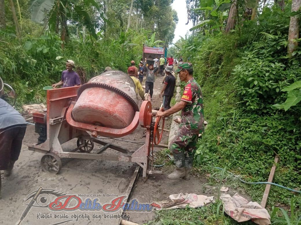 Boyolali, Delikjatim.com – Babinsa Koramil 02/Musuk Kodim 0724/Boyolali Sertu Junari berkontribusi untuk Bangsa dengan melakukan kegiatan Karya Bakti pembangunan jalan rabat beton, bantu pembuatan akses jalan warga di Dukuh Sidomulyo Desa Jemowo Kecamatan Musuk Kabupaten Boyolali. Senin ( 28/03/2022).