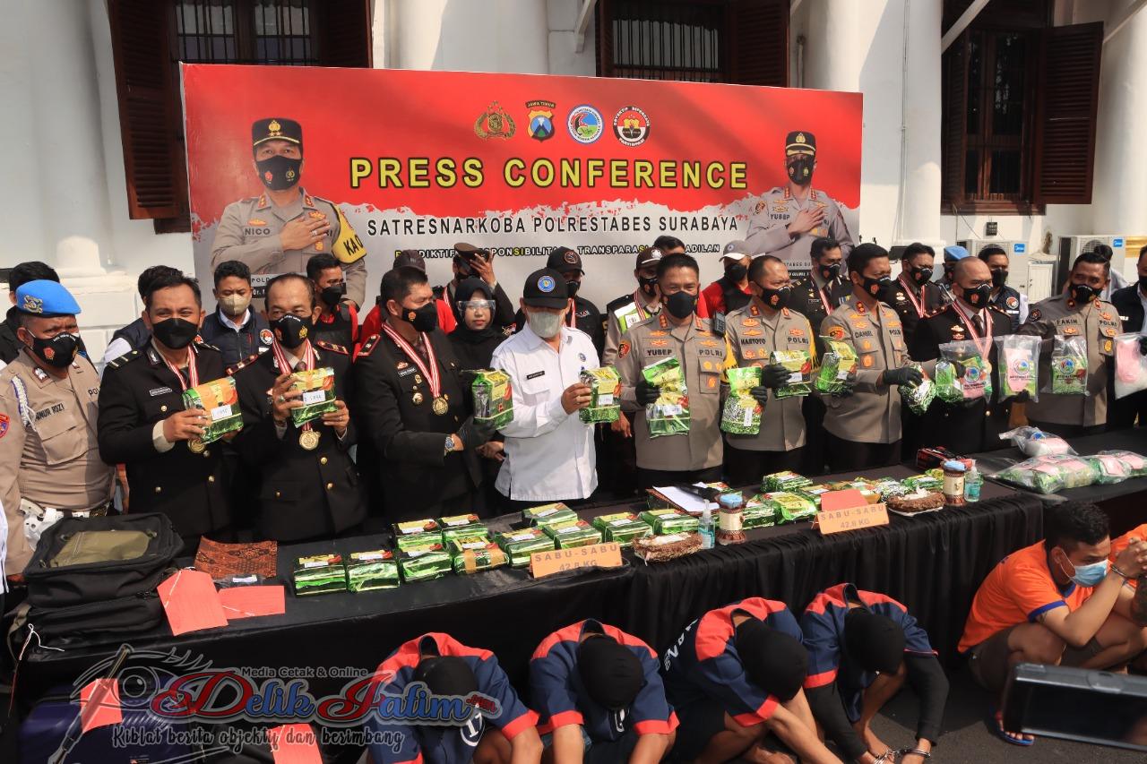 Surabaya, Delikjatim.com – Dalam waktu dua bulan saja, Satresnarkoba Polrestabes Surabaya dan Polsek Gubeng Surabaya berhasil bekuk 7 orang pengedar narkoba dan juga berhasil menyita barang bukti narkotika jenis sabu sebanyak 42,8 Kg.