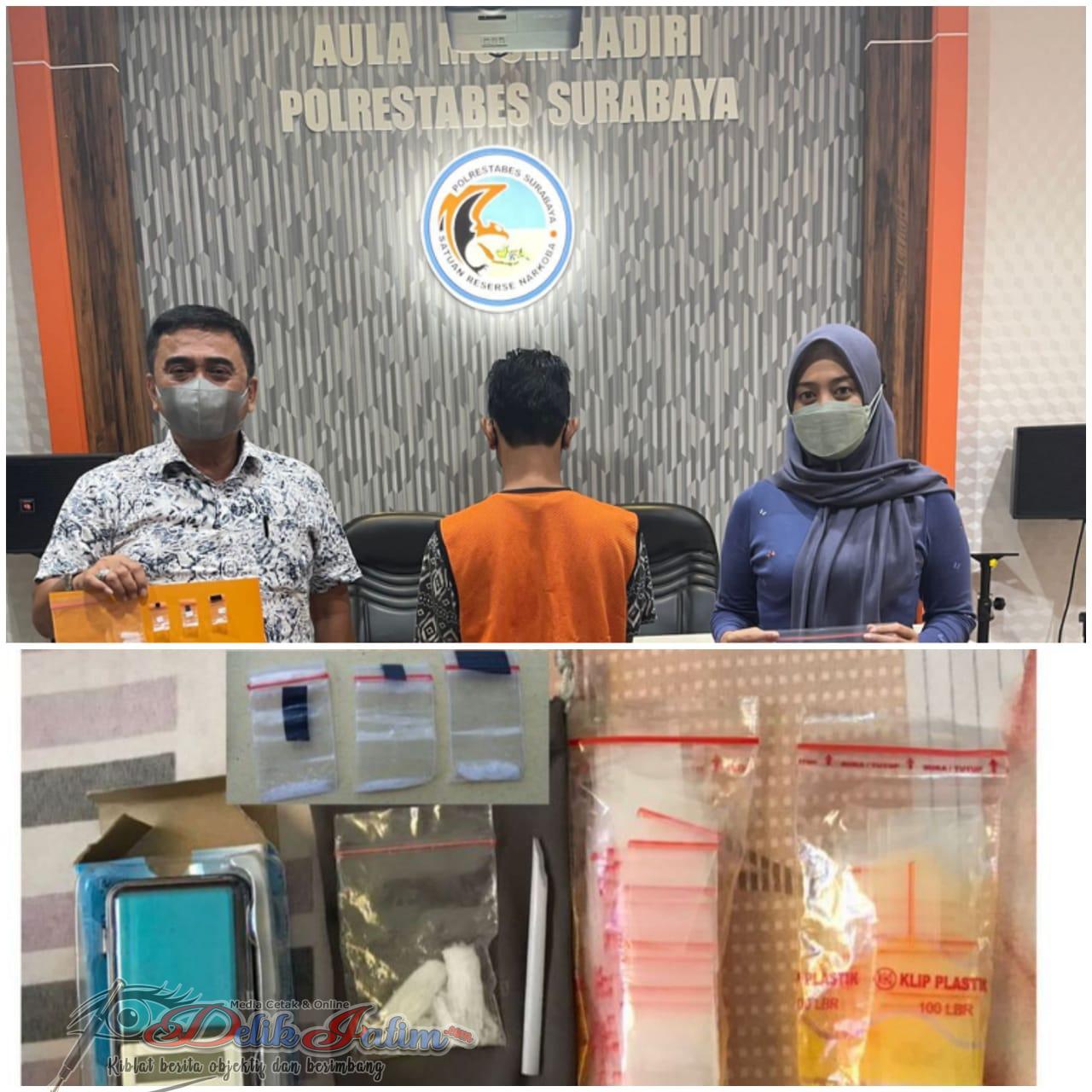 Surabaya, Delikjatim.com – Satresnarkoba Polrestabes Surabaya berhasil melakukan pengungkapan kasus penyalahgunaan narkotika jenis sabu Di Jl. Raya Manyar Surabaya Rabu 09 Maret 2022 sekitar pukul 09.00 wib