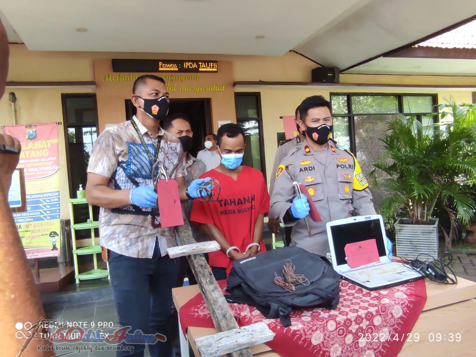Adapun barang bukti berhasil di amankan yaitu 1 ( buah ) laptop 1 ( buah ) lenggis 1 ( buah ) kawat dan 1 ( buah ) panjatan kayu.