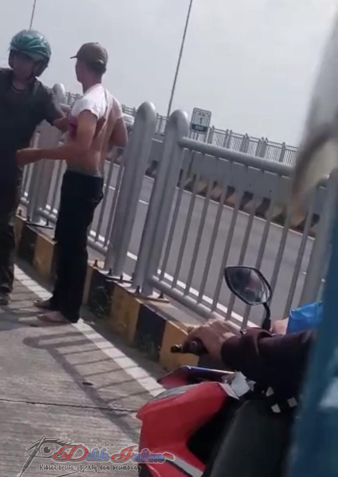 Surabaya, Delikjatim.com – Jagad sosial media dihebohkan dengan beredarnya video aksi pertikaian di atas jembatan Suramadu hingga membuat salah satu pria tercebur ke laut dibawah Suramadu, Selasa 26 April 2022.
