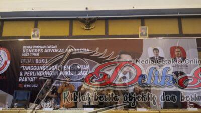 Surabaya, Delikjatim.com – Acara yang bertajuk Halal bihalal dan Bedah Buku Tanggunggugat Pemerintah dan Perlindungan Hukum Bagi Rakyat ini dihelat di Hotel Wyndham Basuki Rahmad Surabaya, Minggu (15/5/2022).