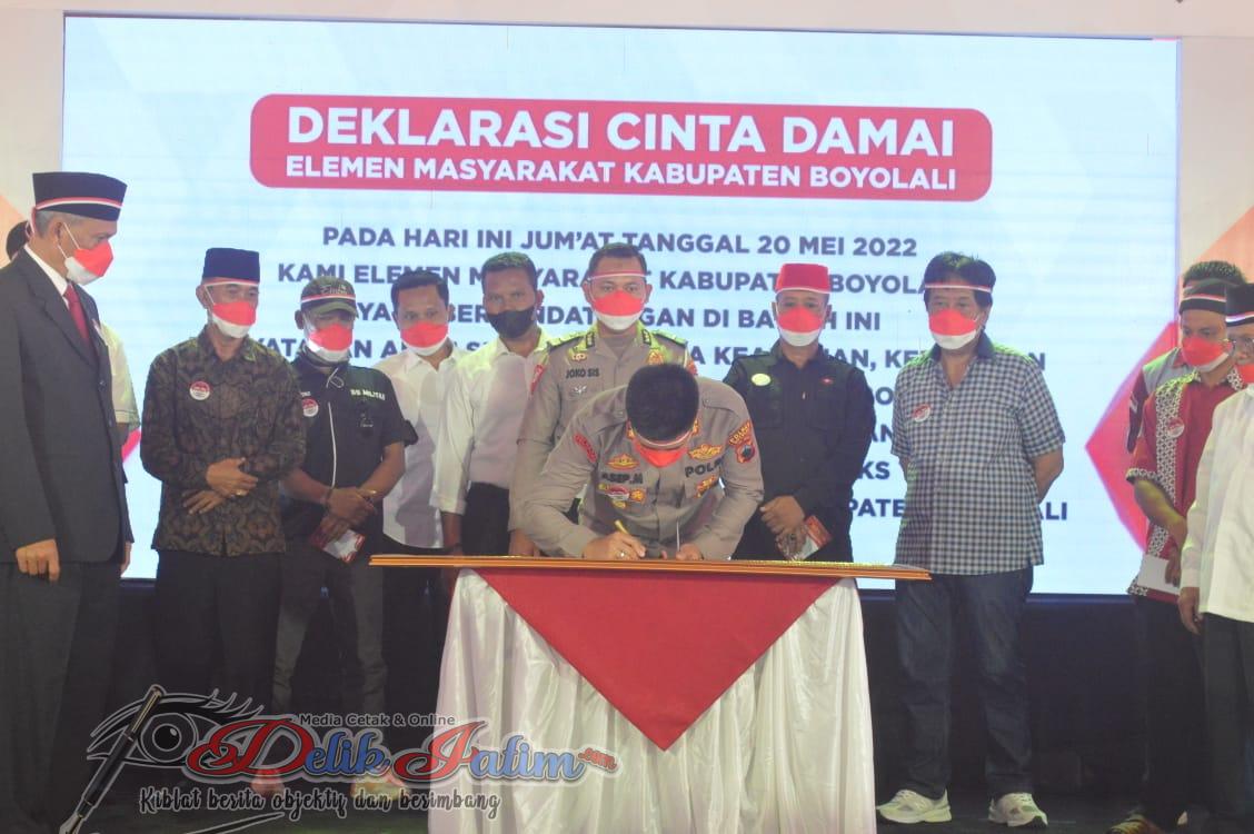 Boyolali, Delikjatim.com – Dandim 0724/Boyolali Letkol Arm Ronald F Siwabessy, M.A. hadiri kegiatan ikrar dan deklarasi cinta damai sejumlah ormas, kelompok bela diri dan tokoh agama di Mapolres Boyolali, Jumat (20/5/2022 ).