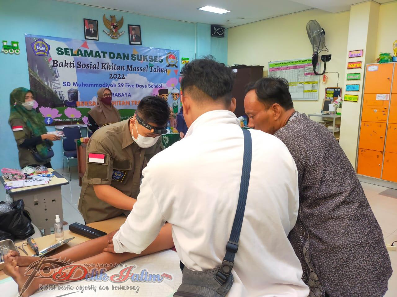 Surabaya, Delikjatim.com – Sebagai bentuk kepedulian terhadap warga sekitar, anak yatim, dan dhuafa, SD Muhammadiyah 29 Surabaya bekerja sama dengan Khitan Travelers menggelar Khitan Massal Gratis, Rabu (22/06/2022).