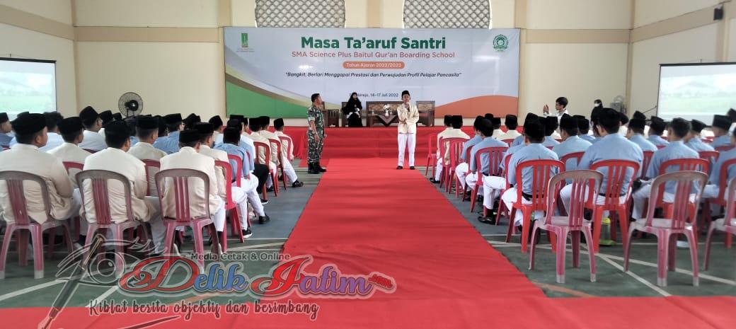 Sragen, Delikjatim.com – Danramil-08/Sambirejo Kodim 0725/Sragen Kapten Inf P Yudo Triwidodo menyampaikan materi wawasan kebangsaan dan bela negara kepada 210 siswa/siswi di Gor SMA Science Plus Baitul Qur’an Boarding School Dk Garut Rt. 4 Desa Dawung Kec Sambirejo Dalam Rangka Masa Pengenalan Lingkungan Sekolah ( MPLS) /Masa Ta`aruf Santri Tahun Ajaran 2022/2023, Senin ( 18/07/2022 ).
