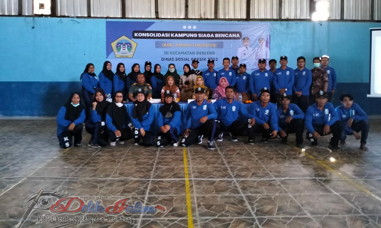 Gresik, Delikjatim.com – Menindak lanjuti Kegiatan Bimbingan Teknik (Bimtek), pengurus Kampung Siaga Bencana (KSB) se Jatim, 28 – 30 juni 2022, di Hotel Platinum Surabaya, Dinas Sosial KSB Lamong Loko Joyo Kecamatan Benjeng, Kabupaten Gresik, menggelar Sosialisasi dan Konsolidasi, Kamis (21/7/2022), di Gor Mugi Bangkit, Desa Munggugianti, Kecamatan Benjeng, Kabupaten Gresik.