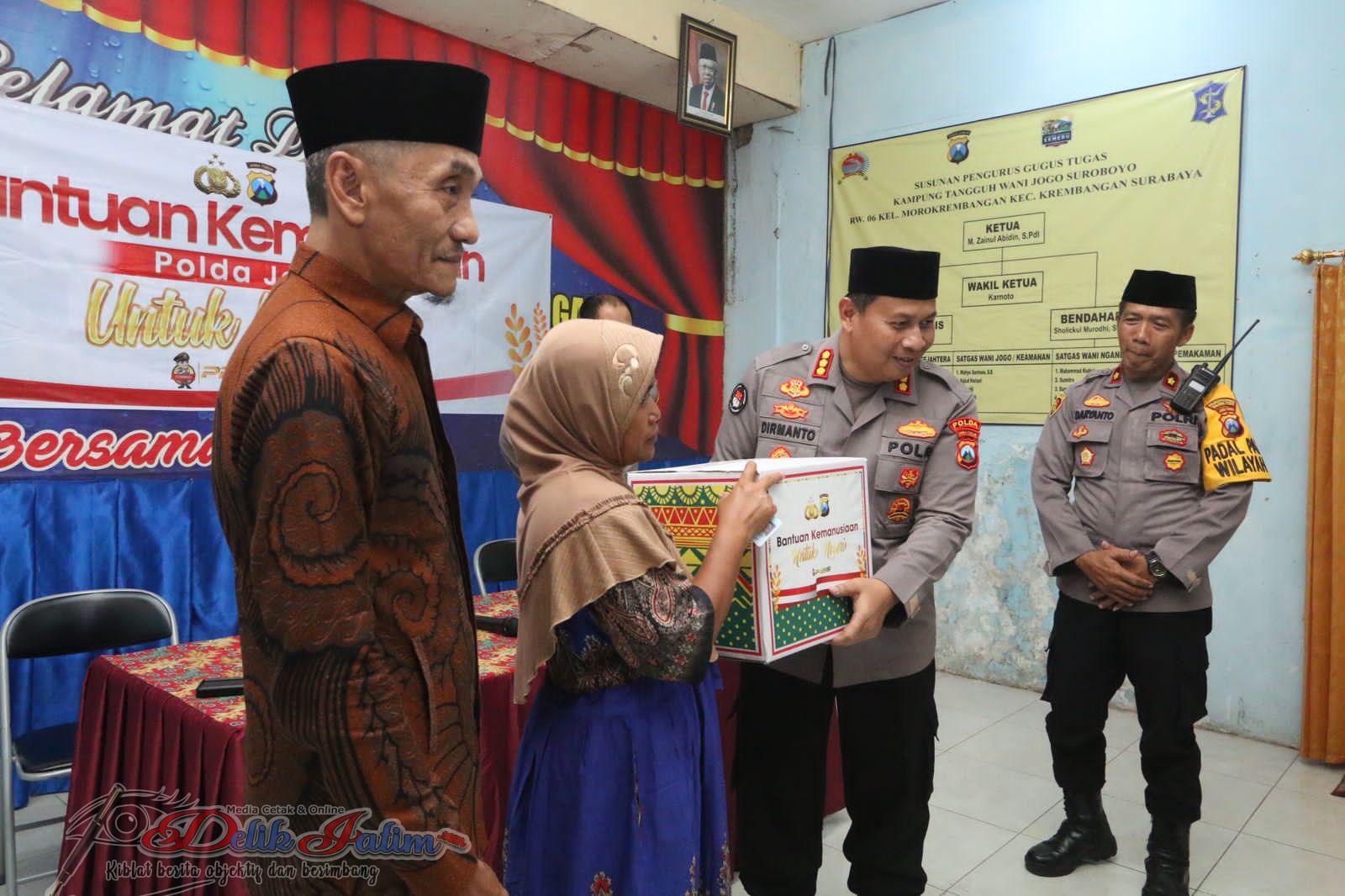 Kali ini Bidang Hubungan Masyarakat ( Bidhumas ) bersama Bidang Hukum (Bidkum) Polda Jatim membagikan 100 paket sembako bagi masyarakat di wilayah Kecamatan Krembangan Surabaya.