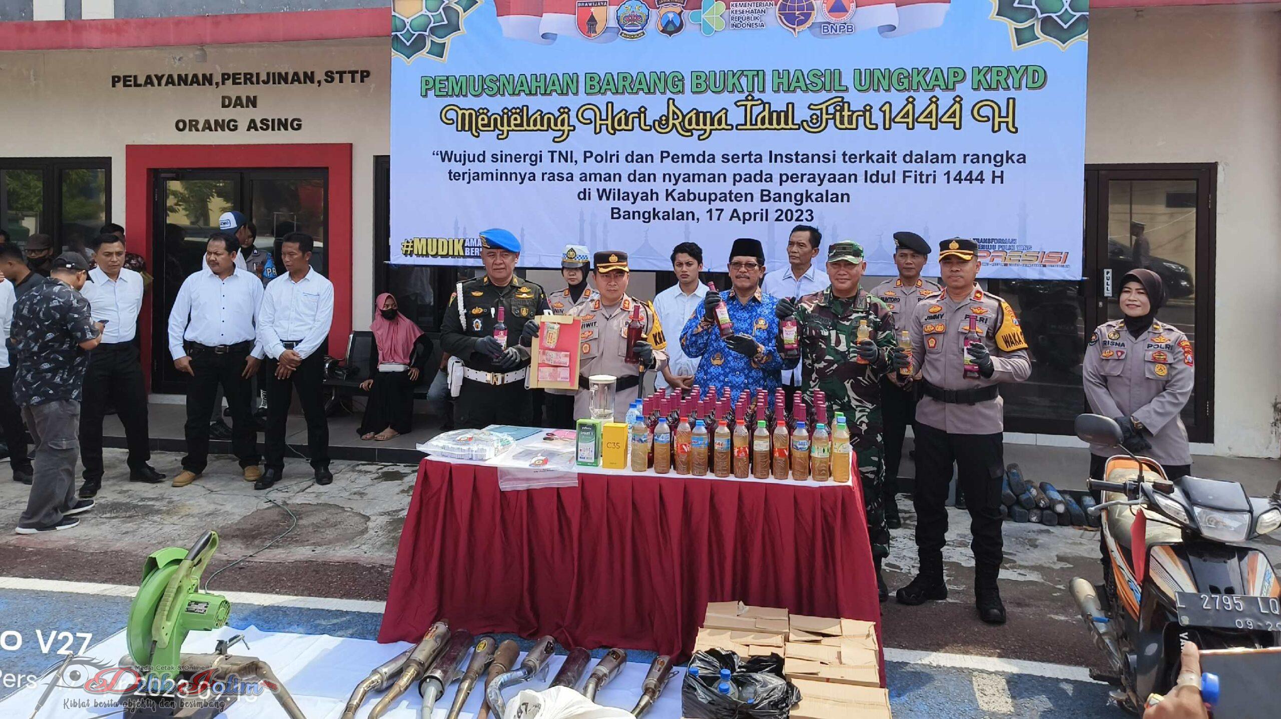 Menjelang Idul Fitri, Polres Bangkalan Musnahkan Barang Bukti Hasil Ungkap KRYD