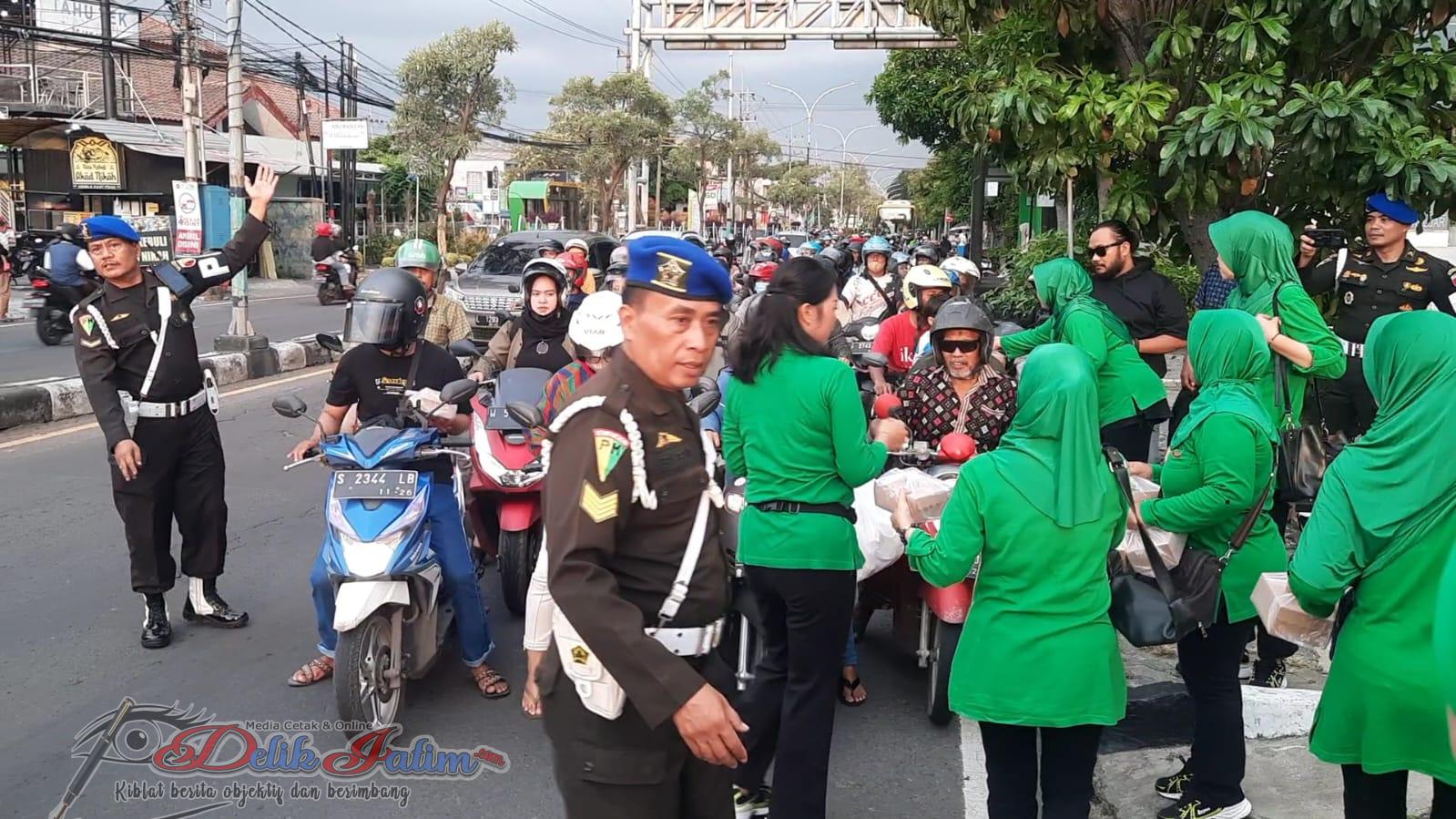 Gresik, Delikjatim.com – Bulan penuh berkah bulan Ramadhan oleh Subdenpom V/4-2 Gresik bersama Persit Candra Kirana Sub Anak Ranting V membagikan ratusan paket Takjil di jalan raya RA. Kartini Kecamatan Kebomas pada Sabtu (8/4/2023) sore.