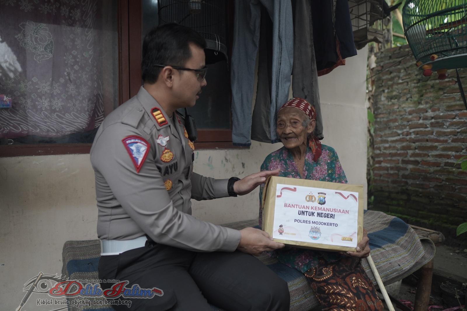Kapolres Mojokerto AKBP Wahyudi melalui Kasat Lantas AKP Muhammad Bayu Agustyan memberikan bansos secara langsung dengan mendatangi rumah warga yang telah di data sebelumnya oleh Bhabinkamtibmas setempat.