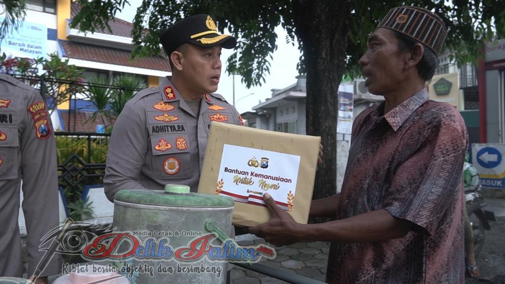 Kali ini Kapolres AKBP Adhitya Panji Anom didampingi Wakapolres Gresik Kompol Erika Purwana Putra dan para pejabat utama Polres Gresik memberikan bantuan dengan mendatangi warga dari pint uke pintu disepanjang jalan Wahidin Sudirohusodo.