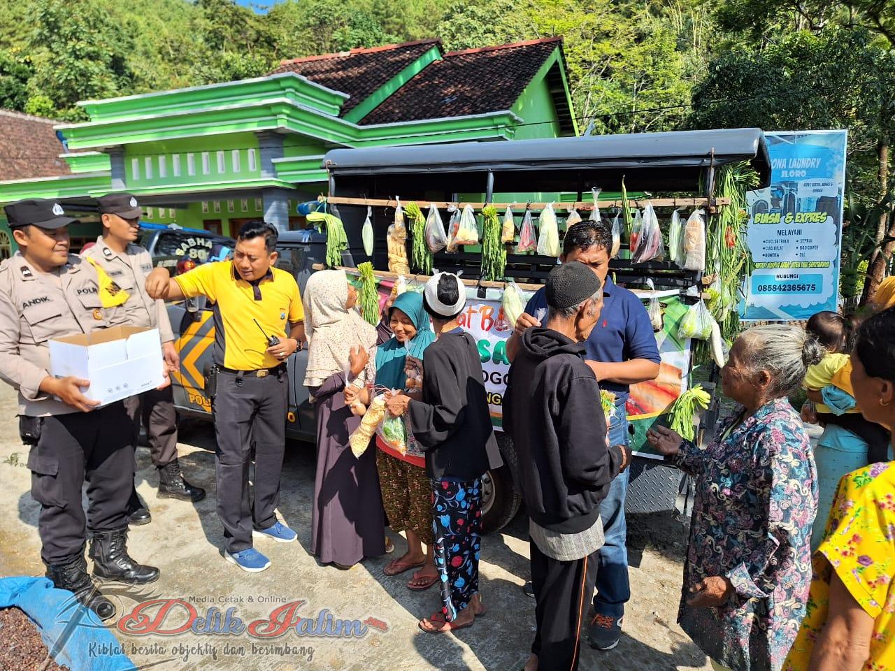 Setelah mengumpulkan iuran dari seluruh anggota yang ada di Polsek Jogorogo, selanjutnya mereka belanja sayuran dan lauk pauk untuk dibawa keliling kampung dengan mobil patroli.