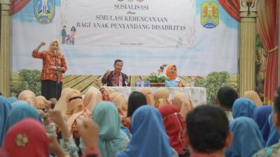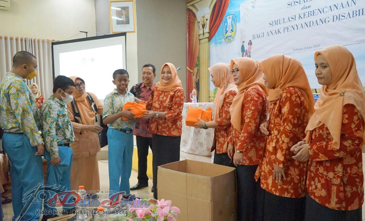 Sidoarjo, Delikjatim.com – Sebagai support system kinerja Badan Penanggulangan Bencana Daerah (BPBD) Jawa Timur (Jatim), Tim Dharma Wanita Persatuan (DWP) BPBD Jatim, kembali menunjukkan kiprahnya melalui pagelaran “Sosialisasi dan Simulasi Kebencanaan Khusus Anak Penyandang Disabilitas”.