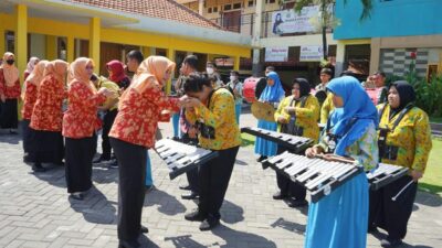 Kehadiran rombongan Tim DWP BPBD Jatim ini disambut istimewah, mereka disajikan penampilan Drumband Siswa SLBN Gedangan.