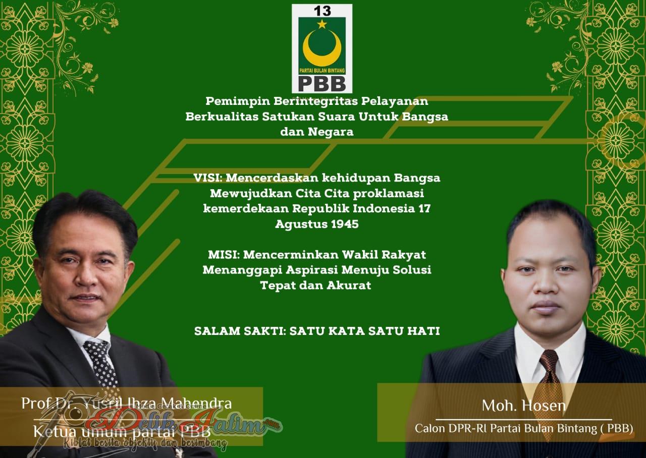 Disisi lain Moh Hosen Caleg DPR-RI Mendukung Ketua Umum Partai Bulan Bintang (PBB) mendukung Prof.Dr Yusril Ihza Mahendra dampingi Prabowo Subianto di Pilpres 2024 yakni sebagai Cawapres.