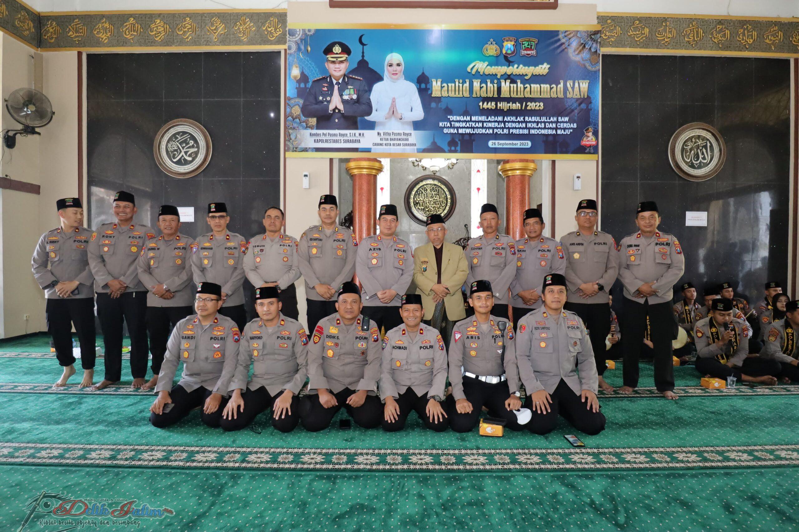 AKP Haryoko Widhi selaku Kasi Humas menyampaikan pesan Kapolrestabes Surabaya Kombes Pol Pasma Royce dengan dilaksanakannya Maulid Nabi ini diharapkan para anggota Polri agar dapat mencontoh kepemimpinan Nabi sehingga dapat mewujudkan Polri yang Presisi.