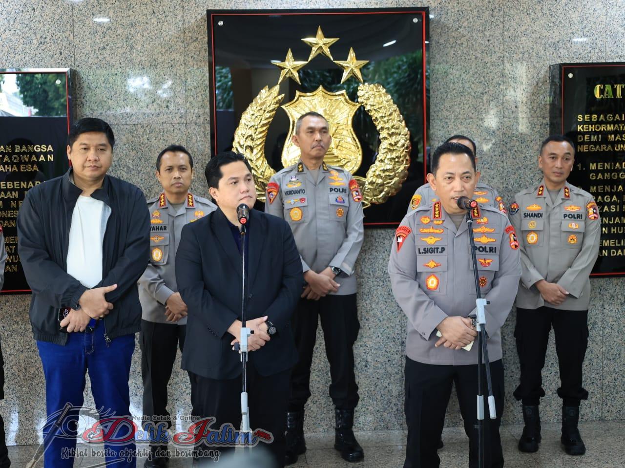 Jakarta, Delikjatim.com – Kapolri Jenderal Listyo Sigit Prabowo menerima audiensi Ketua Umum PSSI Erick Thohir di Mabes Polri, Jakarta Selatan, Senin (15/7/2024). Dalam audiensi ini dibahas beberapa hal salah satunya persiapan pengamanan Piala Presiden 2024 yang akan dimulai pada 19 Juli mendatang.