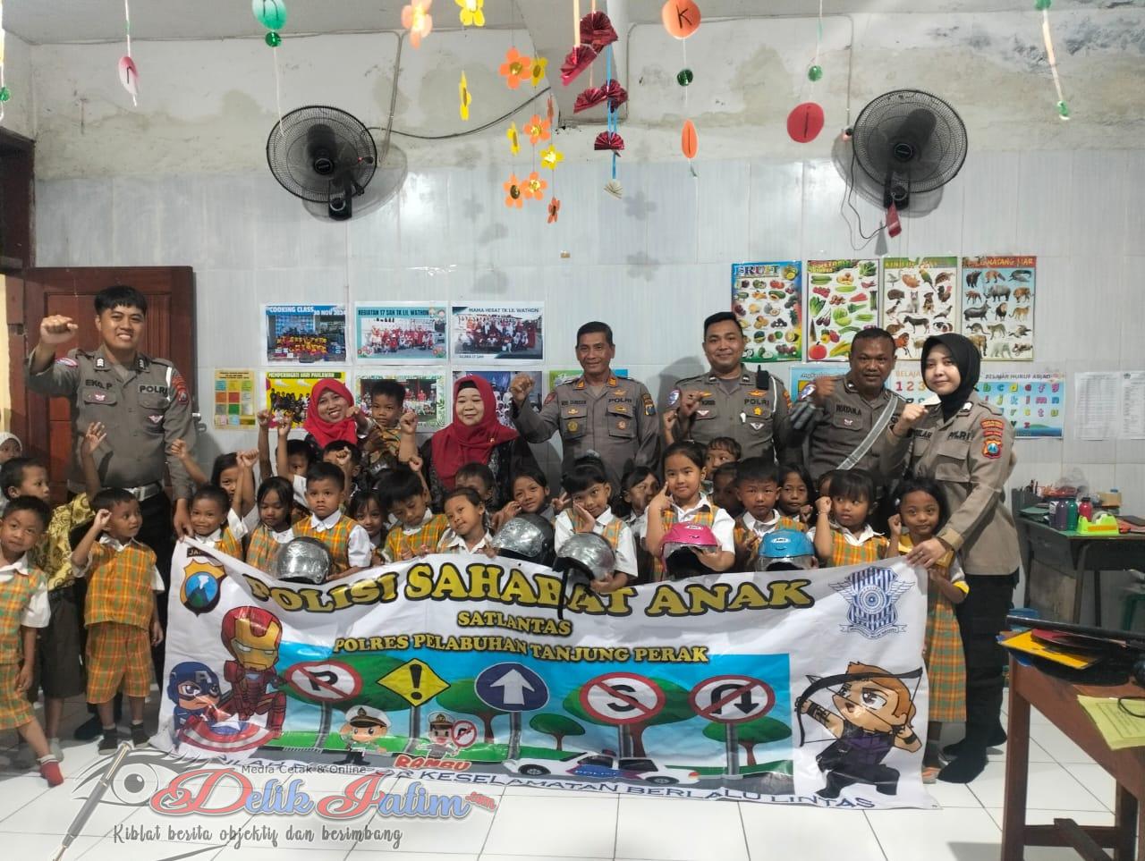 Surabaya, Delikjatim.com – Anggota Satuan Lalu Lintas (Satlantas) Polres Pelabuhan Tanjung Perak kembali menebar benih kesadaran akan keselamatan berlalu lintas sejak dini. Kali ini, giliran anak-anak Taman Kanak-Kanak (TK) Lil Wathon Surabaya yang menjadi sasaran sosialisasi program Polisi Sahabat Anak, Rabu (22/1/2025).