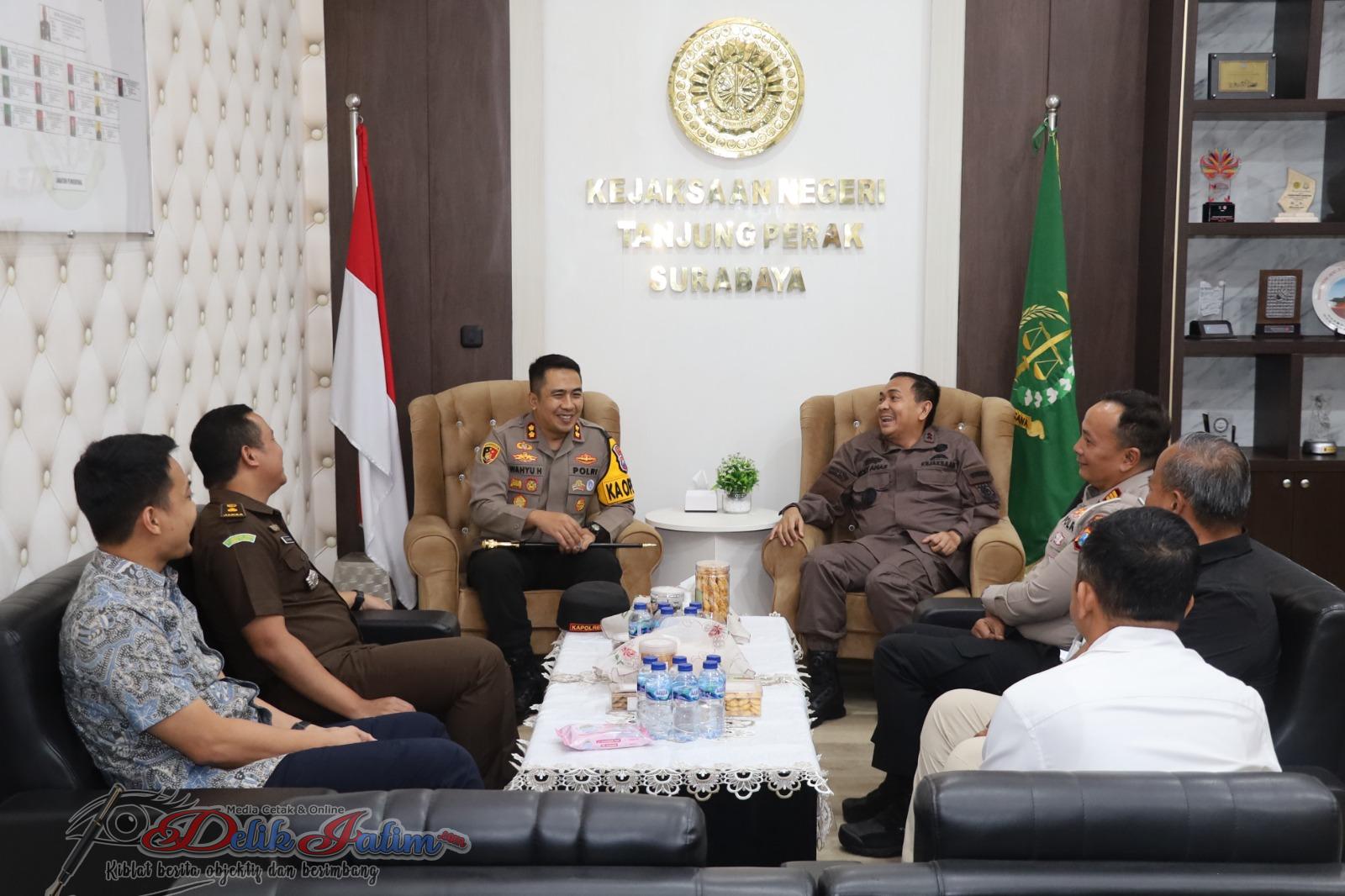 Surabaya, Delikjatim.com – Kapolres Pelabuhan Tanjung Perak, AKBP Wahyu Hidayat, SIK MH, melakukan kunjungan silaturahmi ke Kantor Kejaksaan Negeri (Kejari) Tanjung Perak Surabaya. Kedatangan Kapolres beserta jajarannya disambut langsung oleh Kepala Kejaksaan Negeri Tanjung Perak, Ricky Setiawan Anas, yang didampingi oleh Kepala Seksi Tindak Pidana Umum.