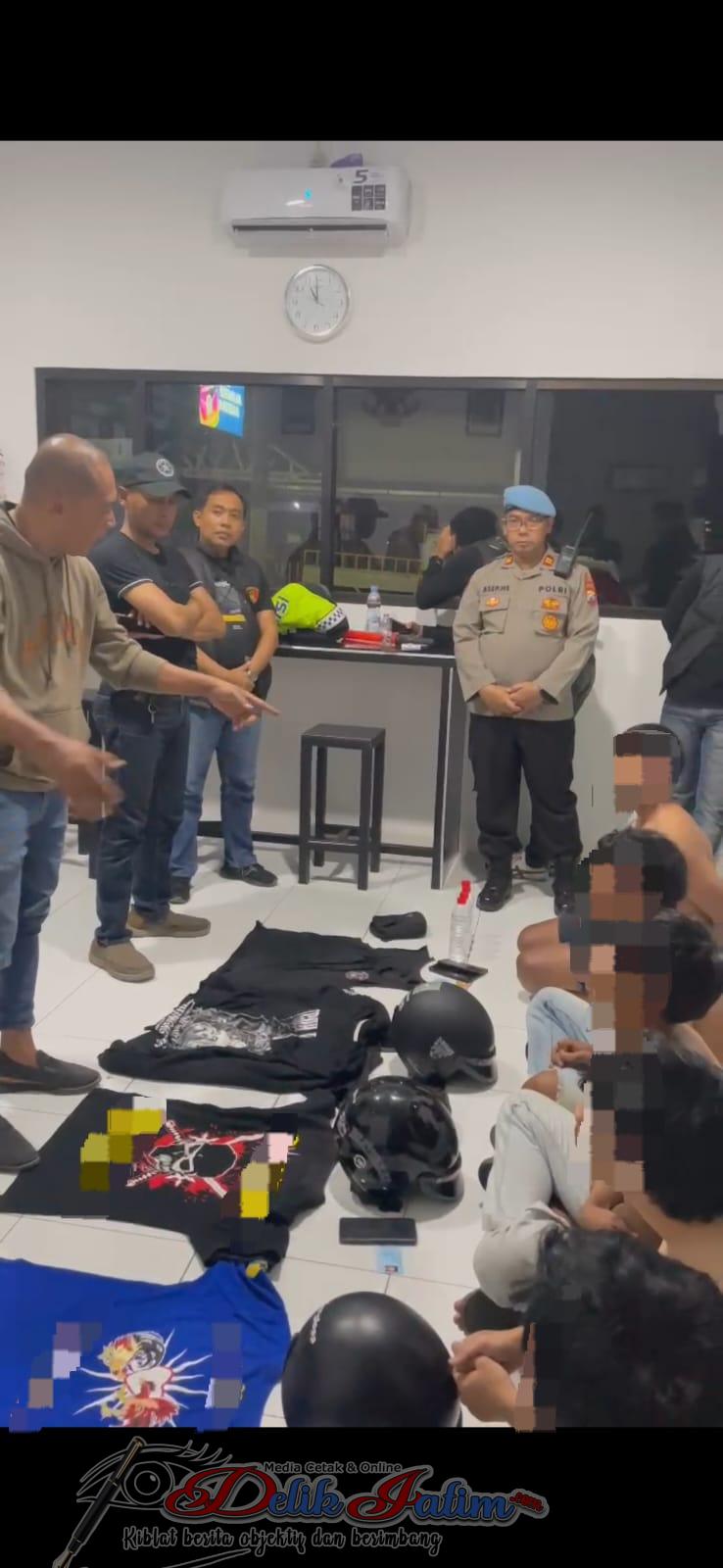 BLITAR, Delikjatim.com – Kepolisian Resor (Polres) Blitar melalui tim gabungan berhasil mengamankan lima orang yang diduga merupakan anggota salah satu perguruan silat dari Tulungagung. Kelima orang tersebut diamankan pada Sabtu malam, 24 Mei 2025 sekitar pukul 22.30 WIB, karena diduga mengganggu ketertiban umum dan meresahkan warga di Jalan Raya Kanigoro, tepatnya di depan Kantor Kabupaten Blitar.