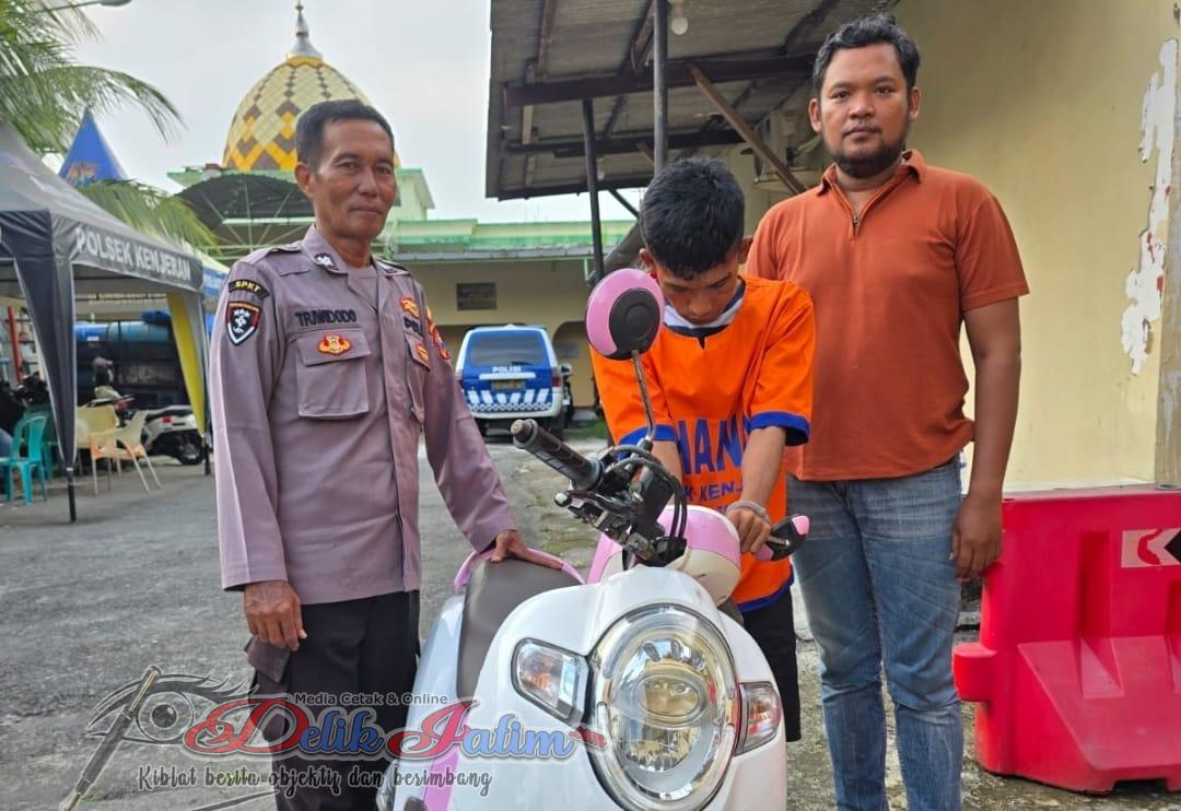 Tersangka ketahuan mencuri satu unit sepeda motor warna putih milik warga setempat. Tersangka berhasil diamankan Polsek Kenjeran.