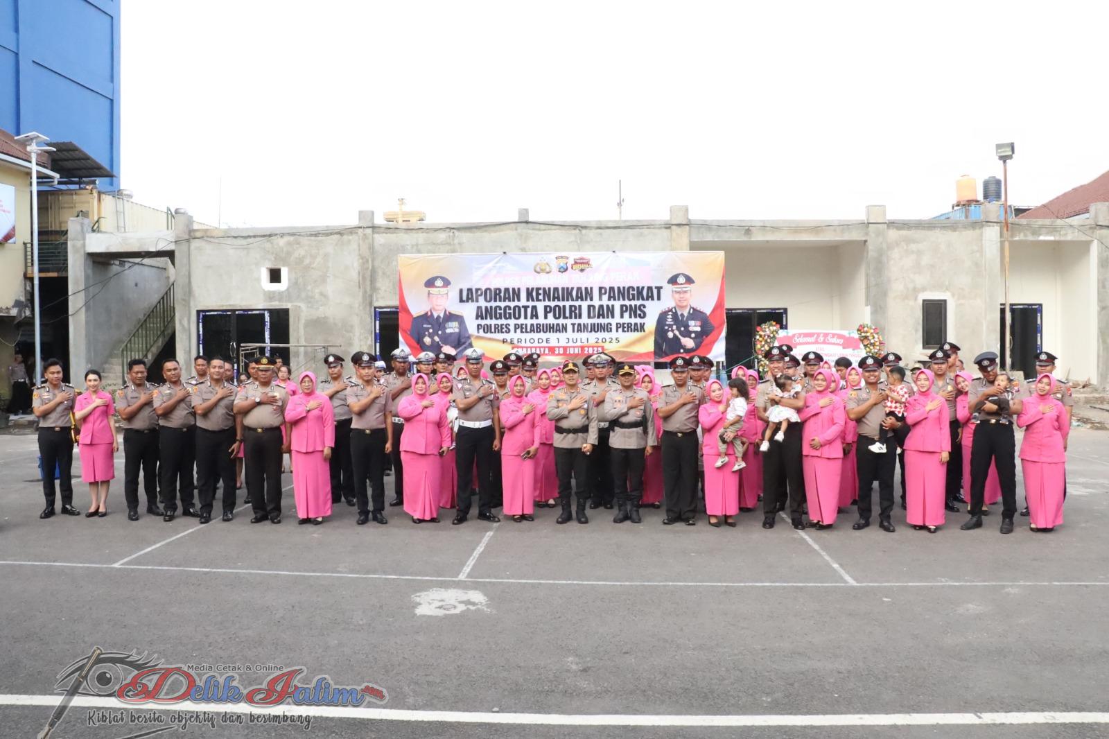 Surabaya, Delikjatim.com – Suasana khidmat dan penuh kebahagiaan menyelimuti lapangan Mapolres Pelabuhan Tanjung Perak, pada Selasa (1/7/2025). Sebanyak 47 personil, yang terdiri dari anggota Polri dan Aparatur Sipil Negara (ASN), resmi menyandang pangkat baru dalam Upacara Laporan Kenaikan Pangkat yang dipimpin langsung oleh Kapolres Pelabuhan Tanjung Perak AKBP Wahyu Hidayat.