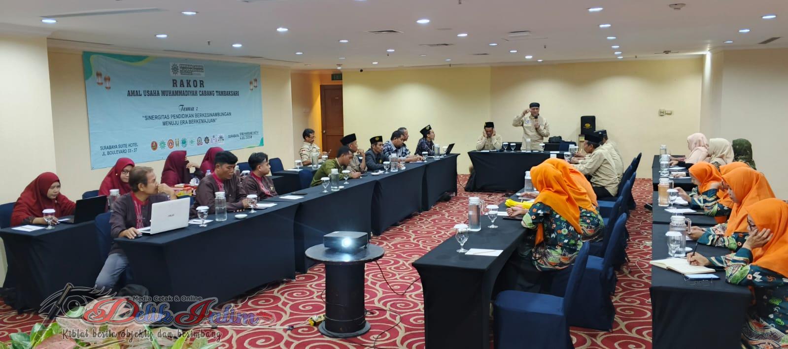 Bertema, “Sinergitas Pendidikan Berkesinambungan Menuju Era Berkemajuan“, rapat koordinasi amal usaha Muhammadiyah Tambaksari dilaksanakan di Surabaya Suite Hotel, Jumat (4/7/2025).