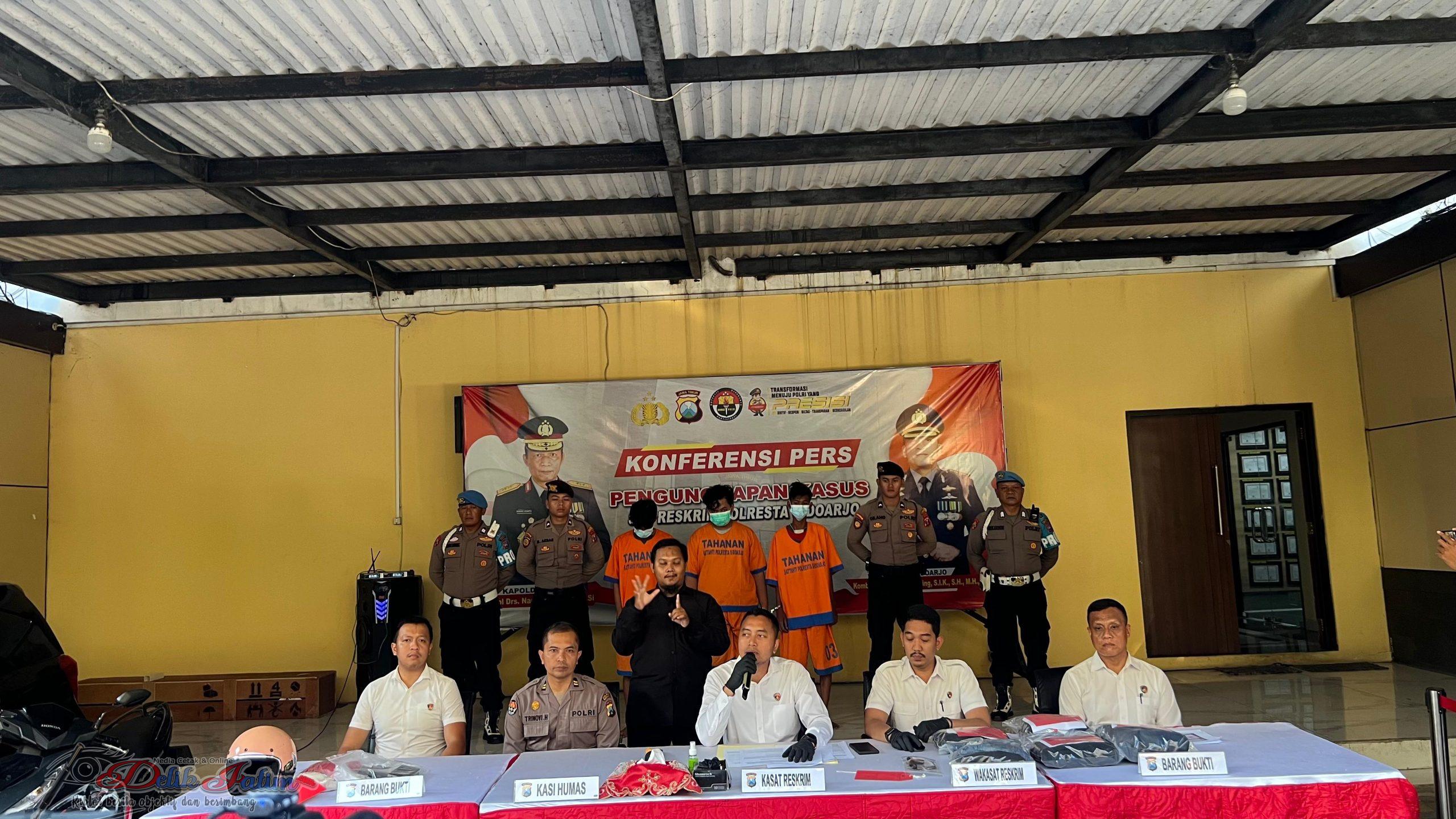 Dalam penyelidikan lebih lanjut, polisi berhasil mengamankan sejumlah barang bukti, di antaranya: 4 buah handphone; 2 jaket hoodie warna hitam; 1 celana pendek warna coklat; 1 ikat pinggang; 1 jaket sweater warna coklat muda; 1 helm; 2 unit sepeda motor