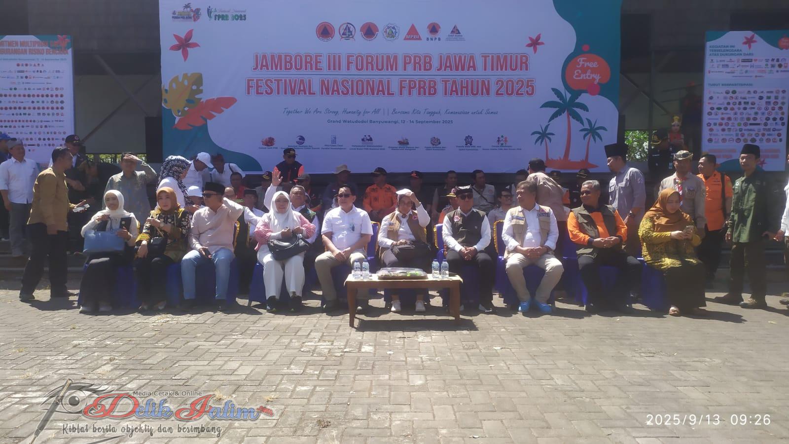 Banyuwangi, Delikjatim.com – Kabupaten Banyuwangi resmi menjadi tuan rumah Jambore III Forum Pengurangan Risiko Bencana (FPRB) Jawa Timur sekaligus Festival Nasional FPRB 2025. Acara yang berlangsung di Grand Watu Dodol pada 12–14 September ini diikuti ribuan relawan kebencanaan dari Jawa Timur maupun berbagai provinsi lain di Indonesia.