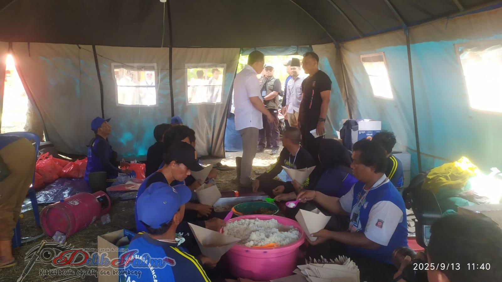 “Masakannya enak, mantap. Terus semangat,” kata Adhy kepada para personel Tagana.