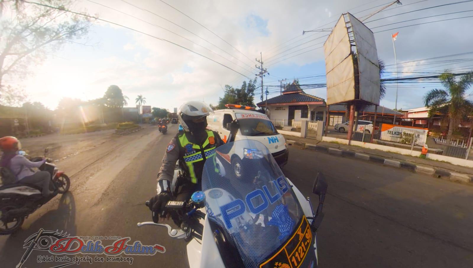 GRESIK, Delikjatim.com – Di tengah padatnya arus kendaraan di jalur Pantura Gresik, tepatnya di Jalan Deandels, sebuah pemandangan tak biasa menarik perhatian petugas patroli Satlantas Polres Gresik, Aipda Bambang Kurniawan. Sebuah mobil ambulans tampak melaju dengan lampu rotator menyala, namun tanpa suara sirine yang biasanya menjadi tanda.